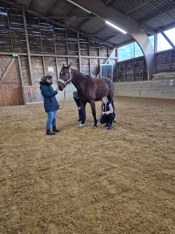 Am 18.10.2025 konnten wir Frau Dr. Kathrin Schmidt von der Pferdeklinik Salzhofen in Bretten für einen Vortrag zum Thema "Erste Hilfe am Pferd - Was tun im Notfall" gewinnen. Kurzweilig referierte sie über mögliche Notfälle und zeigte uns danach wie man Verbände anlegt oder Puls und Atmung mißt. Es war ein sehr lehrreicher und informativer Nachmittag.