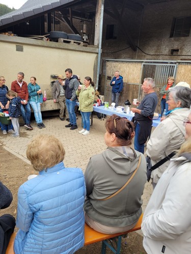 Der Ausflug am 7.10.2023 führte uns zum Fohlenaufzucht- und Ruhestandspferdebetrieb der Famile Fuss in Glottertal. Herr Johannes Fuss begrüßte uns sehr herzlich und zeigte uns seinen artgerecht geführten Betrieb. Den Beritt und Ausbildung der anvertrauten Nachwuchspferde werden auf Wunsch ebenfalls übernommen. Herr Fuss stellte uns den derzeit stationierten 3-jährigen Ponydeckhengst an der Hand vor. Nach einem gemütlichen Imbiss mit Kaffee und ausgemachtem Hefezopf mussten wir uns leider schon wieder verabschieden.