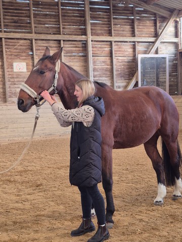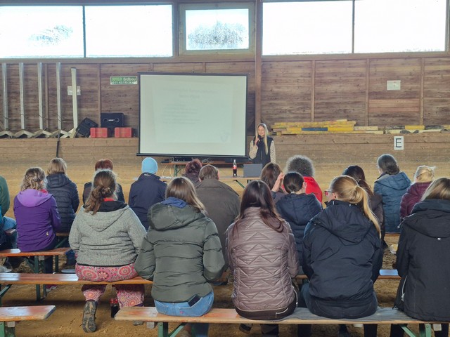 Am 18.10.2025 konnten wir Frau Dr. Kathrin Schmidt von der Pferdeklinik Salzhofen in Bretten für einen Vortrag zum Thema "Erste Hilfe am Pferd - Was tun im Notfall" gewinnen. Kurzweilig referierte sie über mögliche Notfälle und zeigte uns danach wie man Verbände anlegt oder Puls und Atmung mißt. Es war ein sehr lehrreicher und informativer Nachmittag.